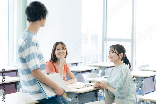 教室でクラスメイトと話す大学生 撮影協力:学校法人電波学園 東京電子専門学校