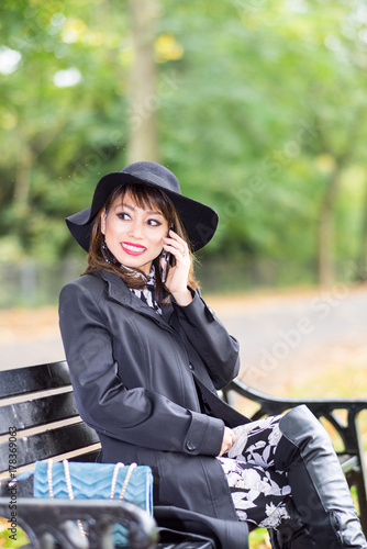 Filipino model in a local park at Autumn time surrounded by lush foliage at daytime