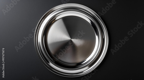 Filled circular platinum plated metal plate isolated on a black background, brushed metal plate