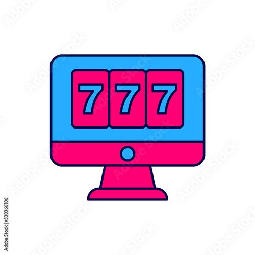 Filled outline Online slot machine with lucky sevens jackpot icon isolated on white background. Online casino. Vector