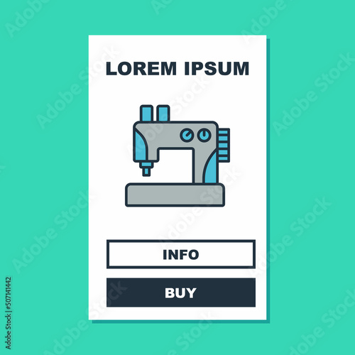 Filled outline Sewing machine icon isolated on turquoise background. Vector
