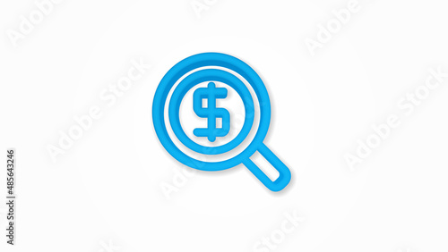 finance and money, magnifying glass with dollar symbol, bank investment search 3d line flat icon. Realistic vector illustration. Pictogram isolated. Top view. Colorful transparent shadow design