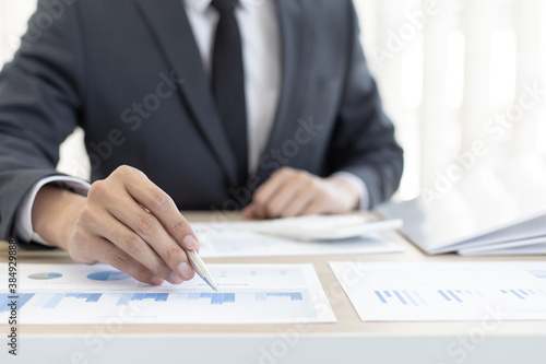 Finance workers are analyzing data in a private office.