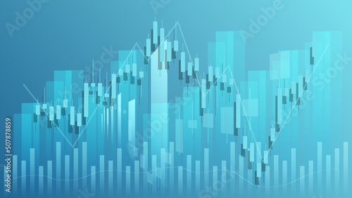 Financial business statistics with bar graph and candlestick chart show stock market price and effective earning on green background