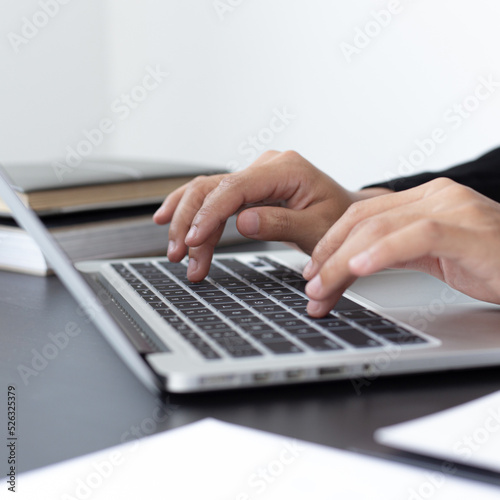 Financial businessmen use laptop to analyze marketing strategies and real estate data to reduce company taxes for their customers, Accounting and Tax concept.