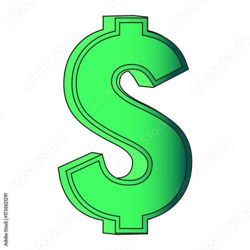 Financial currency symbol, bold green dollar sign, clean white background