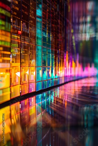 Financial difference chart with vivid, dynamic colors, presented in a side perspective.