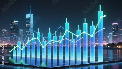 Financial Growth Chart Overlayed on a Cityscape at Night