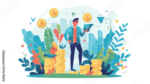 Financial growth concept. Young businessman earn more profit, make money from cryptocurrency