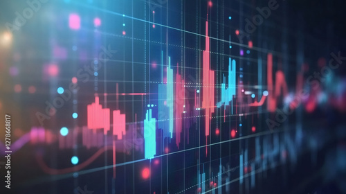 Financial infographic displaying vibrant data visualization, representing upward economic trajectory and analyzing performance metrics