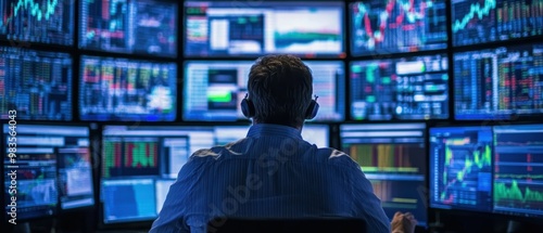 Financial traders analyzing real-time market data on a wall of monitors