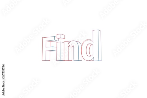Find - 3D Text - Words with colored lines tilde and orange on white