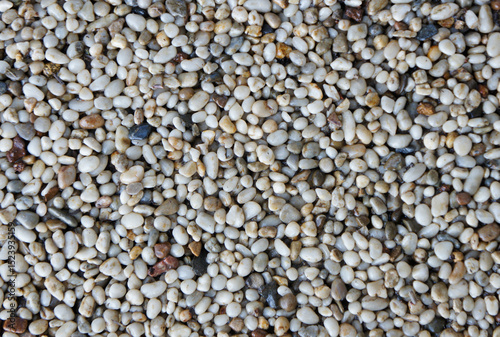 Fine Crimean pebbles texture for landscaping or construction with light-colored pebbles, copy space
