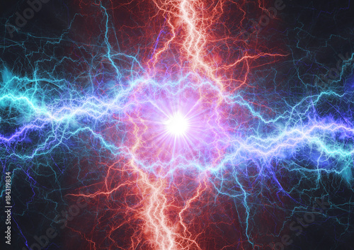 Fire and ice electrical lightning bolt, plasma and electric power background