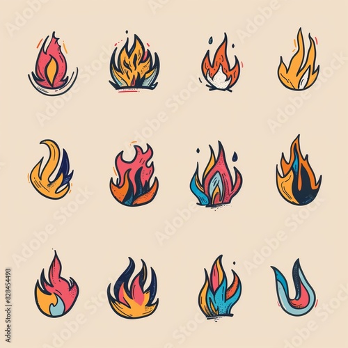 Fire icon, flame bonfire sign, campfire symbol, burn graphic element, fire emblem, grill pictogram