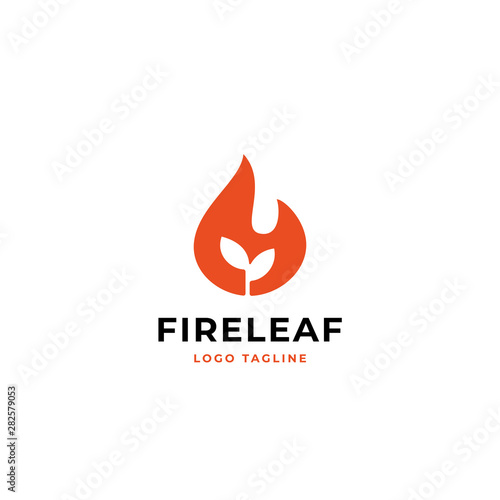 Fire leaf simple logo design concept. burned tiny plant with flame vector illustration icon.
