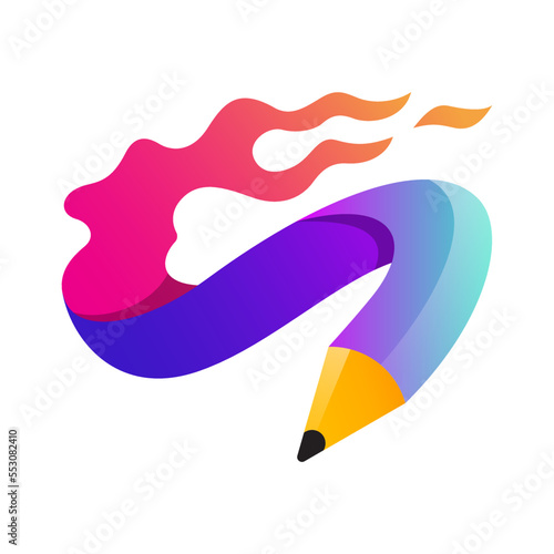 Fire Pencil icon logo modern