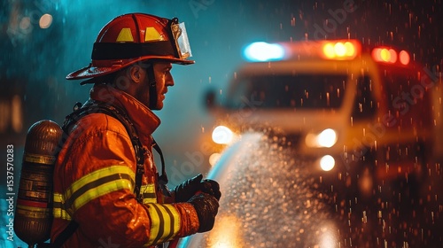 Firefighter in action at night