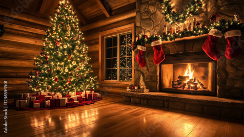fireplace with christmas decorations