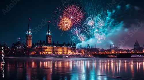 Fireworks Display Over Parliament Hill in Ottawa, Canada