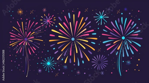Fireworks flat design top view theme celebration cartoon drawing colored pastel