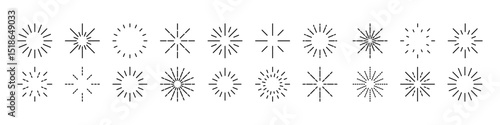 Fireworks icon set. Carnival starburst vector set. Party sparkle sign. Isolated firework icon set.