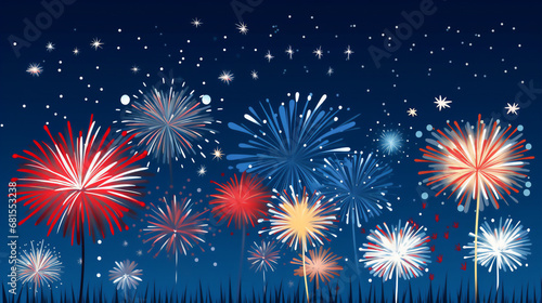 Fireworks illustration on blue background. Generative ai.