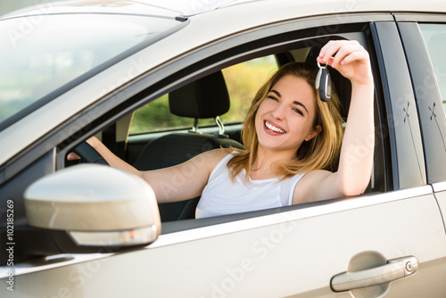 First car - young woman with keys