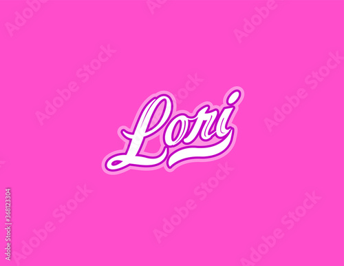 First name Lori designed in athletic script with pink background