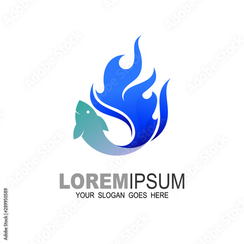 Fish with fire logo template, Fast food and fishing illustration, Restaurant logo
