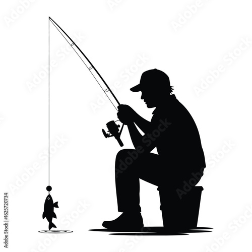 Fisherman Catching a Fish Silhouette Vector Illustration Graphic