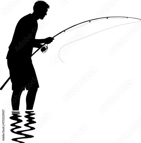 Fisherman Silhouette Vector with Fishing Rod