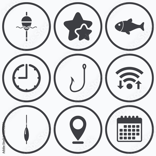 Fishing icons. Fish with fishermen hook symbol.