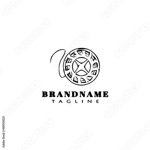 fishing reel logo cartoon design template icon black isolated vector illustration