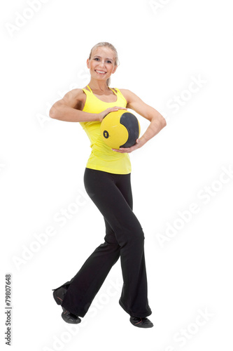 Fitness with ball: young woman doing exercises