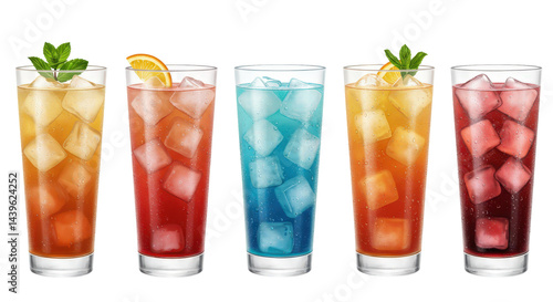 Five Colorful Cocktails Served in Tall Glasses