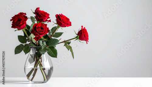 Five roses in a glass vase