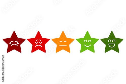 Five Smilies Stars Rating. Emoticons Stock Vector.