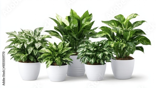Five Vibrant Houseplants in Elegant Pots