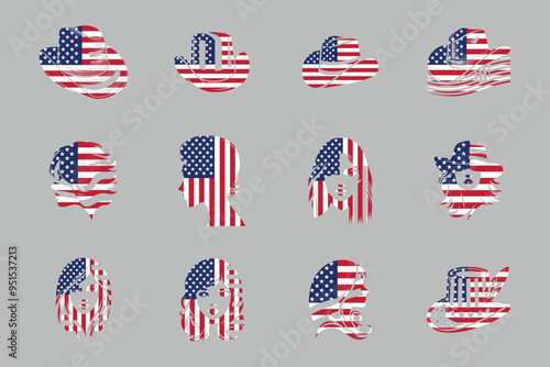 Flag of USA Set, original and simple United states flag Bundle, vector illustration of American flag Collection