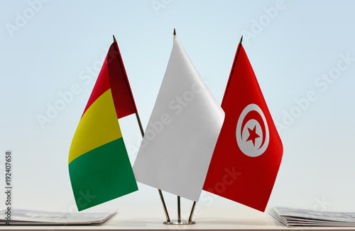 Flags of Guinea and Tunisia with a white flag in the middle