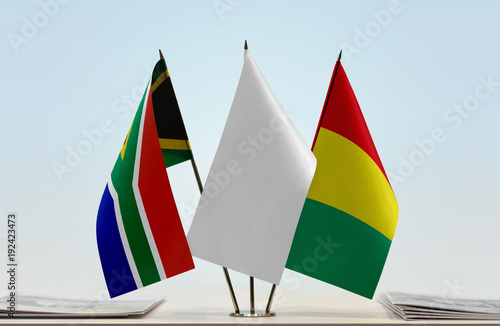 Flags of Republic of South Africa and Guinea with a white flag in the middle