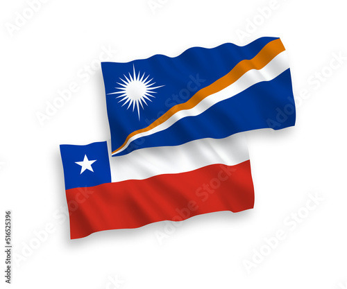 Flags of Republic of the Marshall Islands and Chile on a white background