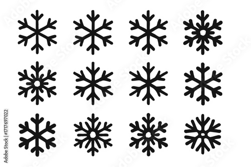 Flake snowflake icon vector black design abstract symmetrical pattern geometric rounded