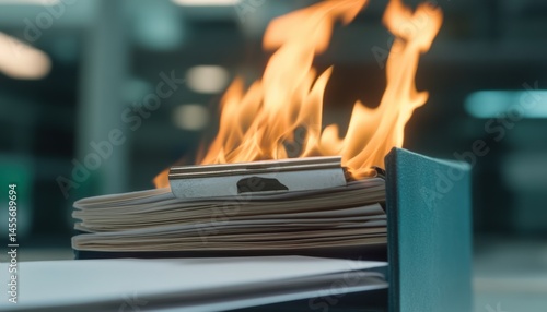 Flame of risk management burning documents insurance folder office environment tension in content