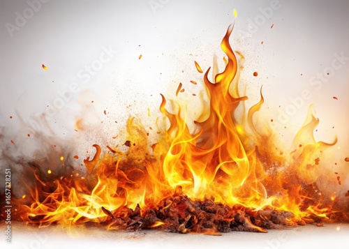 Flame on White Background with Embers