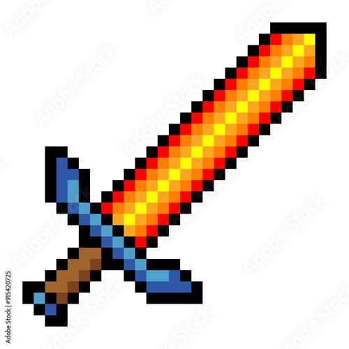 Flaming sword in pixel art style.