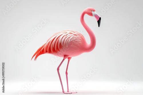 Flamingo, pink feathers, standing gracefully, white isolated background