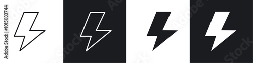 Flash icon vector icon set black filled and outlined style.