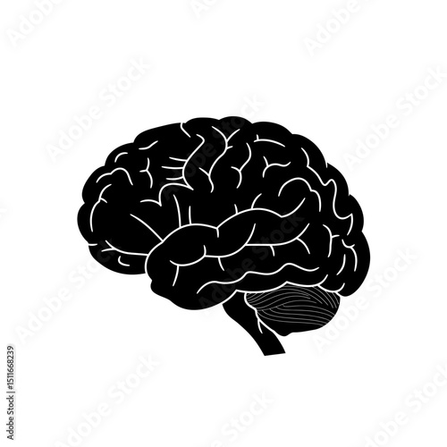 Flat Black Silhouette Vectors of Human Body and Internal Organs on White Background